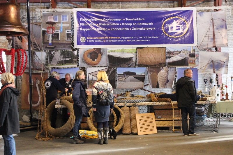 Op de komende editie van de EOC-Traditionele Schepen Beurs zal de bekende Helderse onderneming Scheepstuigerij De Schieman na een aantal jaren van afwezigheid weer met een eigen stand vertegenwoordigd zijn. Dit heeft eigenaar c.q. oprichter Peter Wezelman de organisatie laten weten. Al meer dan dertig jaar maakt zijn bedrijf op een ambachtelijke manier producten van zowel touw, zeil als staaldraad. Waaronder kabelaringen, leguanen, stootwillen, fenders, netten, ladders, bootkleden en verstaging. Ook heeft Peter samen met zijn medewerkers al diverse kunstprojecten uitgevoerd, zoals een indrukwekkende touwwand in het Heerema-kantoor in Leiden. Op de eerste edities van onze beurs was de stand van Peter een absolute blikvanger (foto).